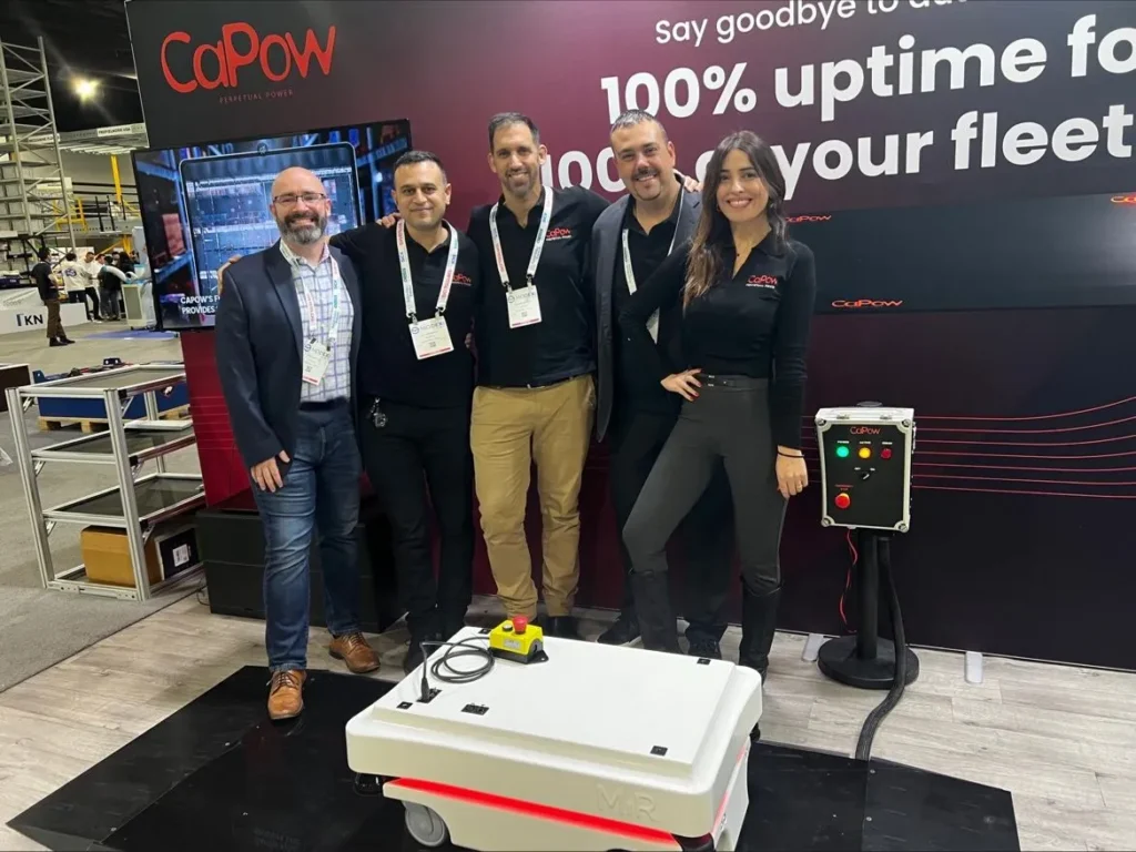 PIcture of the CaPow booth at Modex 2024. From left to right are Phil Denton, Eli Abramov, Noam Geffen, Mor Peretz, and Rebecca Barel. Jamie Callihan and Amir Fishelov showed up the next day.