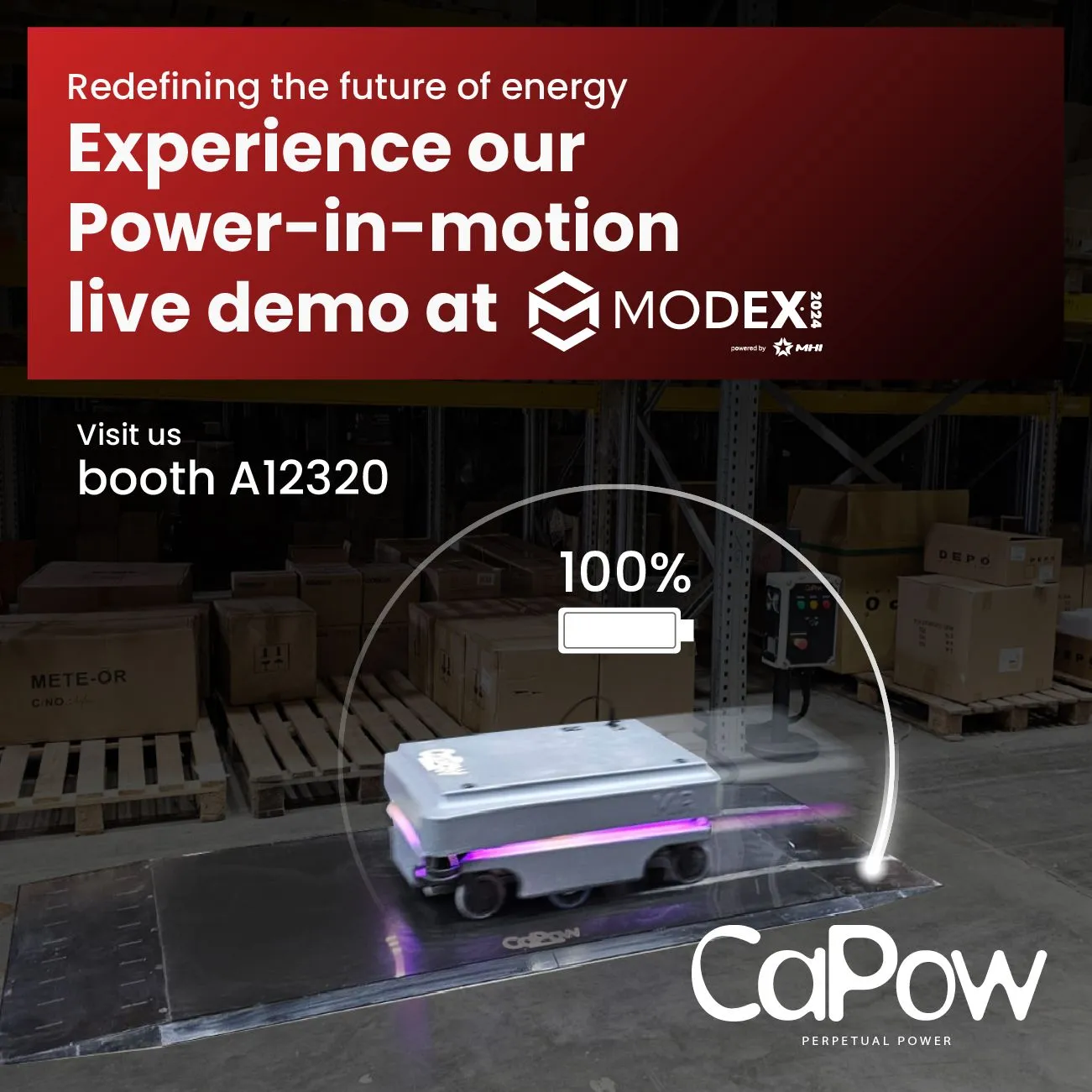 Visit us at the CaPow booth at Modex 2024 to speak with our robotics experts and learn how easy material handling can be. We look forward to seeing you there!