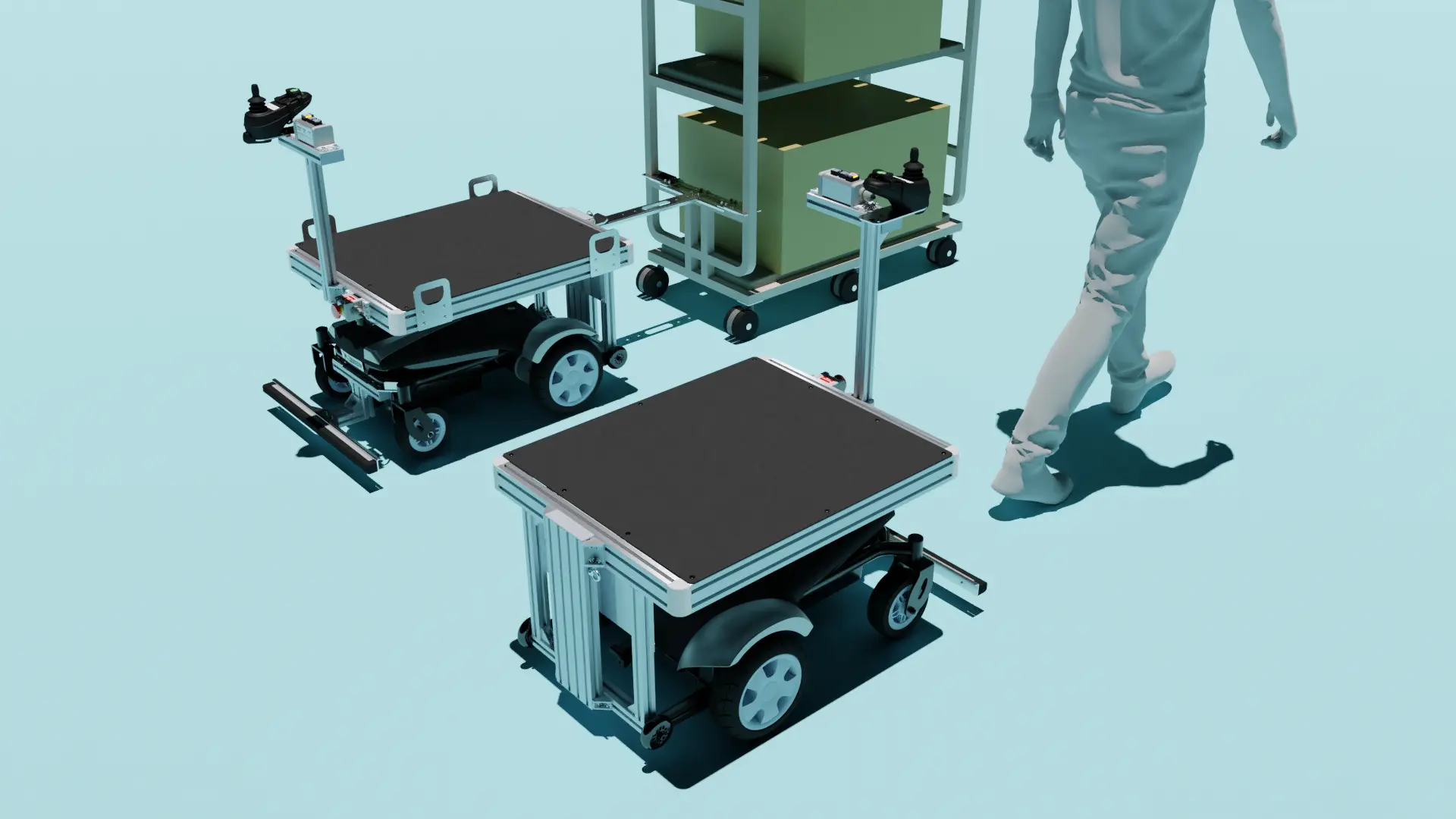 Thouzer is flexible with customizable payloads with cabinets, shelving, bins, etc...Carry full-size pallets, pull pallet jacks, or string up to (5) autonomous carts together.